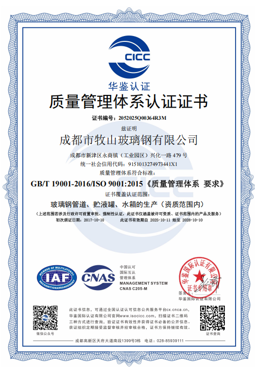 成都市牧山玻璃钢有限公司创始于1996年,公司主要经营废气、废水处理设备、玻璃钢管道及储罐,非标玻璃钢产品的生产、销售、现场安装调试,不饱和聚酯树脂生产、销售以及承接防腐施工工程的专业公司,是一家在四川、重庆及西南地区化工、建材行业有一定影响力的民营企业。公司位于成都市新津区工业园区B区内,(距离成都双流国际机场约20公里)占地面积85.43亩,建筑面积31.5亩。公司发展至今拥有职工110人,其中获得了中高级职称的专业技术人员13人。具有玻璃钢管道、储罐及其它玻璃钢制品约10000吨/年,不饱和聚酯树脂大约5000吨/年和辅料100吨/年的生产能力。 主要产品有玻璃纤维缠绕容器、玻璃钢盐酸储槽、玻璃钢槽子、玻璃钢运输罐、、、、